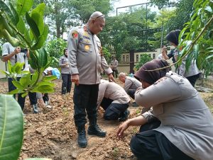 SERANG, mediakpk.co.id – Dalam rangka mendukung program ketahanan pangan, Kepolisian Resor (Polres) Serang yang dipimpin langsung Kapolres AKBP Condro Sasongko melaksanakan kegiatan Minggu Menanam dengan memanfaatkan lahan tidur di pekarangan Mapolres Serang.