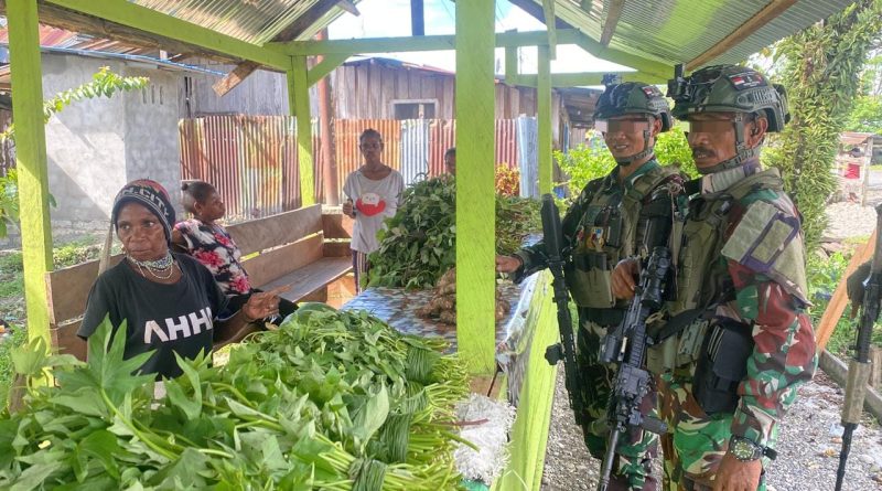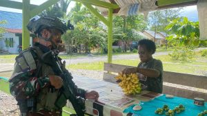 Dekai Yahukimo, MediaHabema, mediakpk.co.id– Satuan Tugas Batalyon Infanteri (Satgas Yonif) 6 Marinir, bagian dari Komando Operasi HABEMA di Papua, secara aktif melaksanakan tugas Operasi Pengamanan Perbatasan Mobil RI-PNG, khususnya di wilayah Kabupaten Yahukimo, Provinsi Papua Pegunungan. Pada hari Senin, 25 November 2024, Tim Patroli Satgas Yonif 6 Marinir melaksanakan rutinitas patroli pengamanan di wilayah Kampung Muara, Distrik Dekai, Kabupaten Yahukimo. Saat pelaksanaan patroli, para Prajurit Satgas Yonif 6 Marinir berkesempatan melintasi area pasar dan melakukan program ROSITA atau Borong Hasil Tani milik warga yang sedang menjual hasil taninya.
