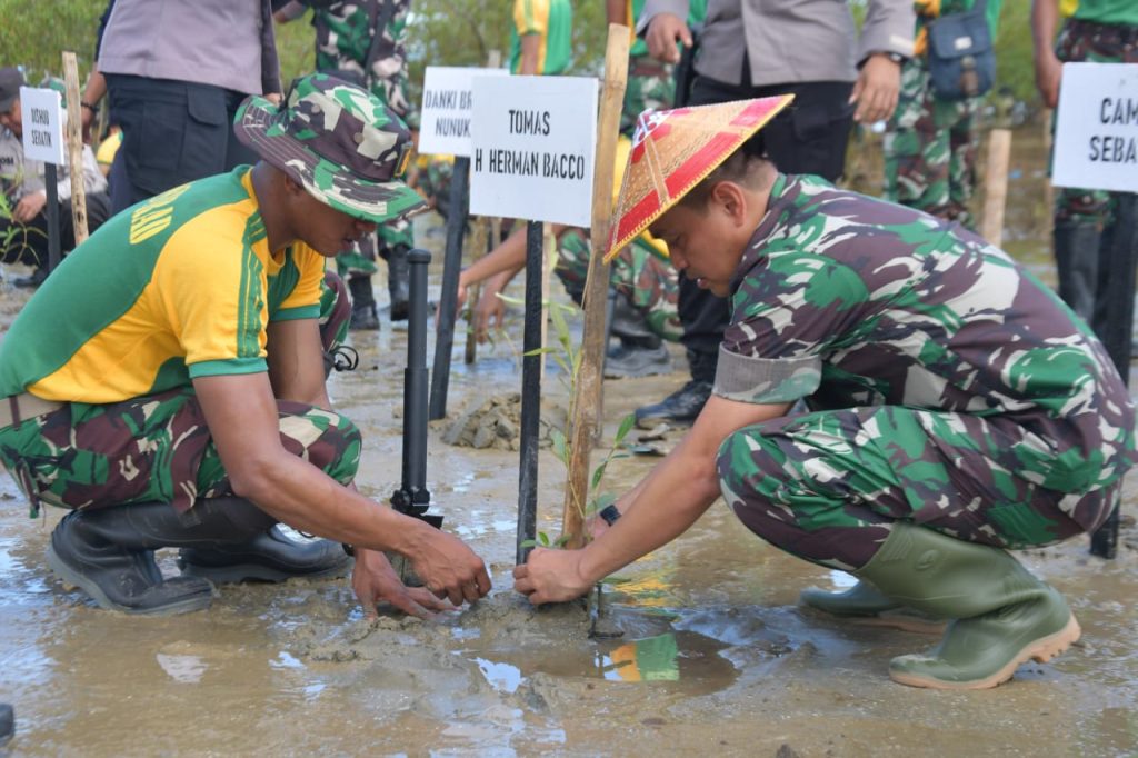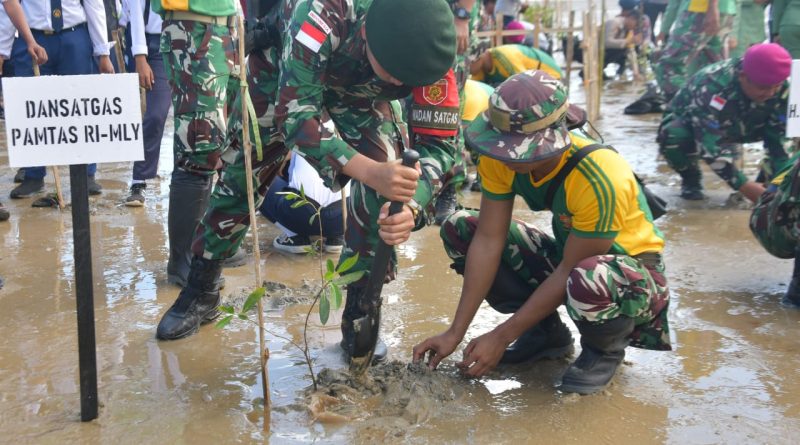 Satgas Pamtas Yonarmed 11 Kostrad Laksanakan Penanaman Mangrove di Perbatasan