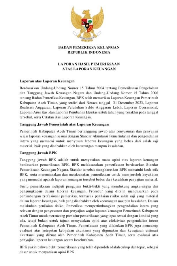 Temuan BPK ini menjadi ujian bagi Pemerintah kabupaten Aceh Timur untuk membuktikan keseriusan mereka dalam membenahi pengelolaan keuangan daerah.