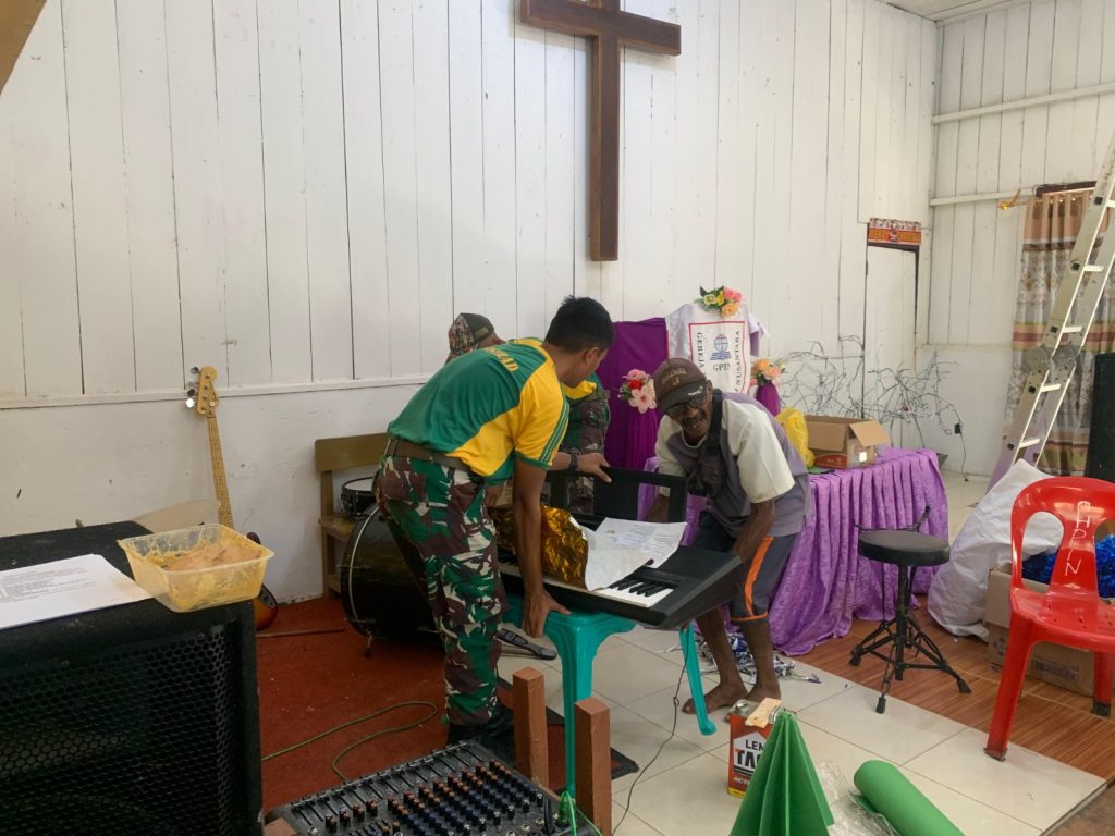 Thank you for reading this post, don't forget to subscribe!Kegiatan tersebut dilakukan sebagai wujud kebersamaan dan kepedulian antara aparat TNI, TDM, dan warga dalam menyambut momen spesial bagi umat Kristiani di wilayah perbatasan. Tidak hanya bertujuan memperindah rumah ibadah, kegiatan ini juga menjadi sarana mempererat hubungan antara personel Satgas Pamtas dengan masyarakat setempat dan aparat negara tetangga.