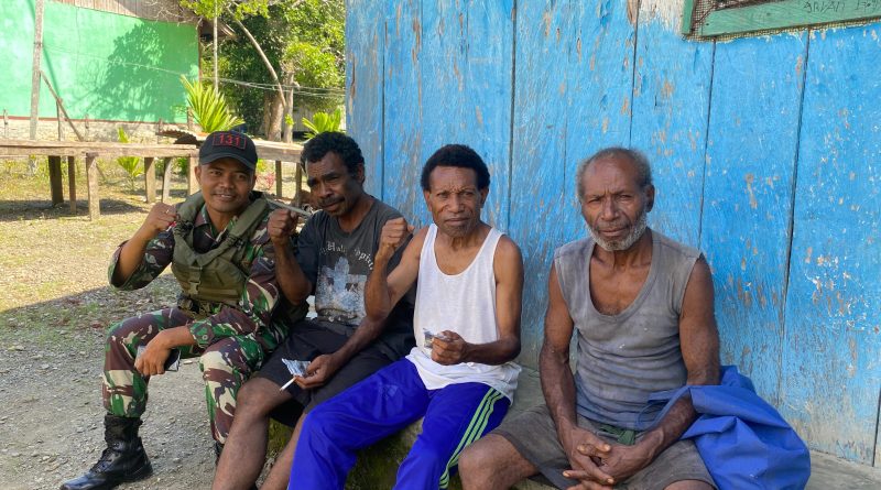 “Senang bisa ngobrol dengan Pak Tentara, sambil istirahat bapak tentara ini kasi ilmu kesehatan dan manfaat kebersihan untuk kita – kita orang,” ucap Barthol Amo.