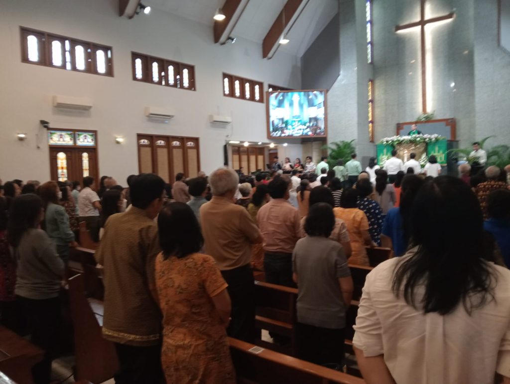 Kegiatan ibadah minggu Pagi dengan Pendeta Lucas Adytia, Tema “Pengharapan Pengenapan Janji Tuhan”, jumlah jemaat 100 orang, Tutur Serka Rohmad