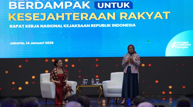 Kejaksaan Agung, Jakarta – Menteri Pendayagunaan Aparatur Negara dan Reformasi Birokrasi (PANRB), Rini Widyantini hadir sebagai narasumber pada Rapat Kerja Nasional (Rakernas) Kejaksaan Republik Indonesia yang diselenggarakan pada Selasa 14 Januari 2025 di The Sultan Hotel & Residence Jakarta.