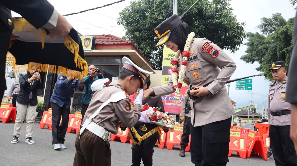 Thank you for reading this post, don't forget to subscribe!Acara dimulai dengan kedatangan AKBP Anita Indah Setyaningrum, S.I.K., M.H sebagai Kapolres baru yang disambut dengan hangat oleh jajaran Polres Magelang Kota. Setibanya di gerbang Mako Polres, Kapolres baru disambut meriah oleh Polisi Cilik dari TK Kemala Bhayangkari 82 yang dengan penuh semangat mengalungkan bunga dan membacakan puisi sebagai simbol sambutan hangat untuk pemimpin baru.