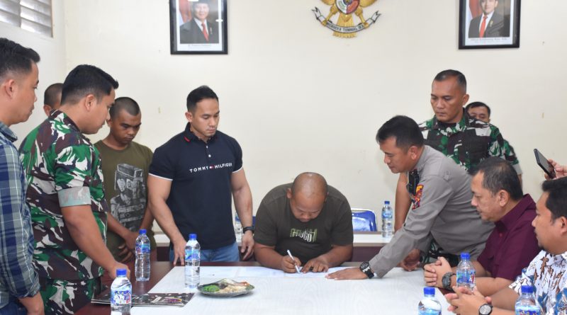 Pancur Batu, mediakpk.co.id –  Perdamaian tercapai antara Praka DSL, anggota Resimen Arhanud 2/SSM, dan tiga pelaku pengeroyokan dirinya di Kantor Polsek Pancur Batu pada Jumat (7/2/2025). Dalam proses mediasi tersebut, kedua belah pihak sepakat menandatangani surat perjanjian damai sebagai bukti penyelesaian masalah.