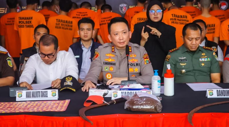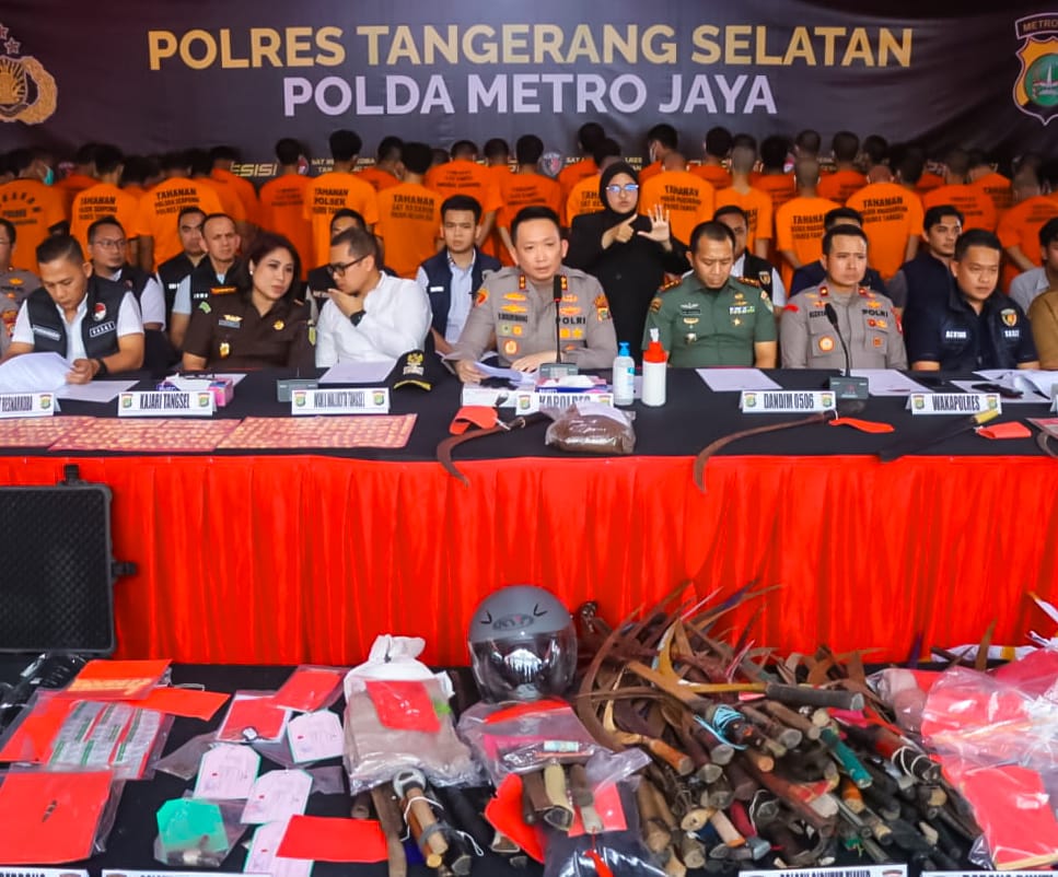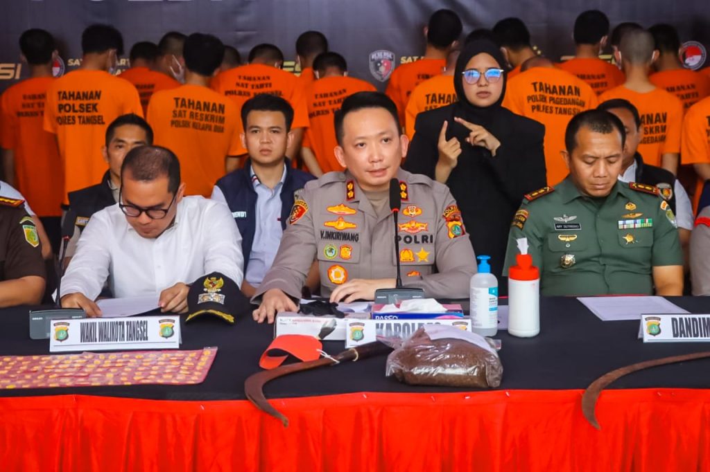 Kapolres Tangsel AKBP Viktor D.H. Inkiriwang, S.H, S.I.K, M.Si., menyampaikan hal tersebut dalam konferensi pers yang dihadiri oleh Forkopimda antara lain Wakil Walikota Tangerang Selatan H. Pillar Saga Ichsan, S.T., M.T., Kajari Kota Tangerang Selatan Apsari Dewi S.H., LL, M, PH. D., Dandim 0506 Tangerang Letkol Inf. Ary Sutrisno, S.I.P.