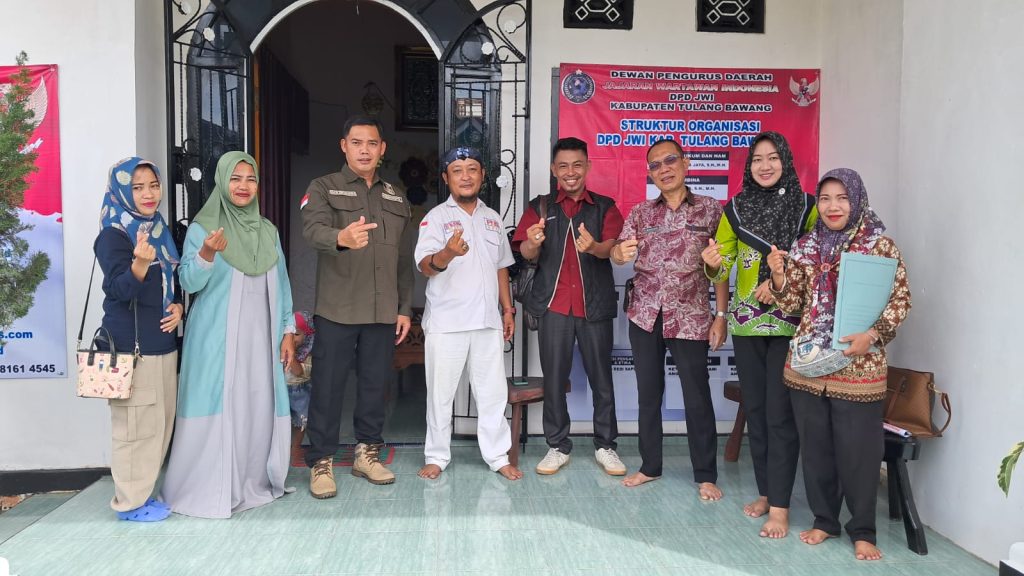 Tulang Bawang, mediakpk.co.id – Dalam rangka meninjau keberadaan Kantor DPD JWI Tuba, Dewan Pengurus Daerah (DPD) Jajaran Wartawan Indonesia (JWI) Kabupaten Tulang Bawang, Provinsi Lampung, dari segi kelengkapannya, Serta keberadaan kantor Sekretariat DPD JWI Tuba, Kabid kesbangpol Tuba M.Sholehudin. Yang mewakili Bapak Saut Sinurat SH, Selaku Kepala Badan Kesbangpol Tuba, Melakukan peninjauan secara langsung ke kantor DPD JWI Tuba yang berada di Kampung Baru JL Rais 1 Kel Ujung Gunung, Kecamatan Menggala Kabupaten Tulang Bawang, pada hari Jum’at (07/03/2025).