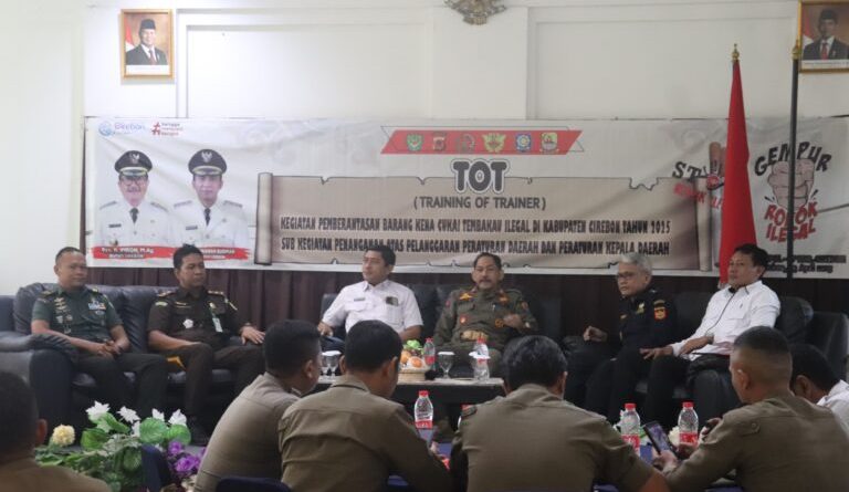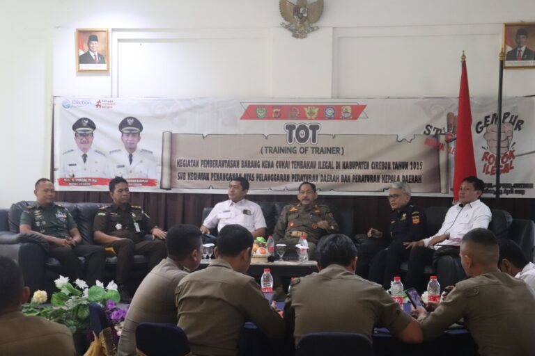 Pemerintah Kabupaten Cirebon melalui Satuan Polisi Pamong Praja (Satpol PP) menggelar pelatihan Training of Trainer (ToT) terkait pemberantasan barang kena cukai (BKC) tembakau ilegal tahun 2025, yang berlangsung di Hotel Apita Cirebon, Rabu (23/4/2025).