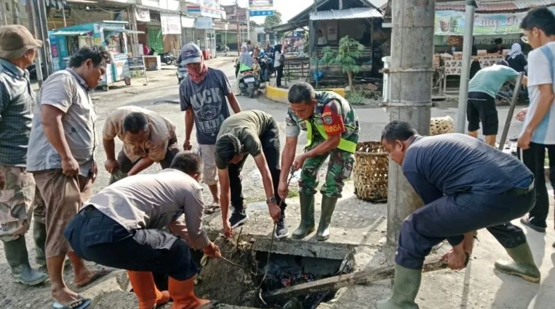 Babinsa Koramil 01/Kuala Simpang Gotong Royong Bersihkan Gorong Gorong