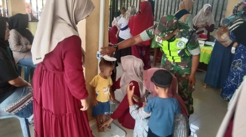 Babinsa Koramil/07/Kejuruan Muda jajaran Kodim 0117/Aceh Tamiang, Serda Wawan Kurniawan melaksanakan kegiatan pendampingan Pos Pelayanan Terpadu (Posyandu) Integrasi Layanan Primer (ILP) yang digelar di Kantor Desa Purwodadi, Kecamatan Kejuruan Muda, Jumat (02/05/25)