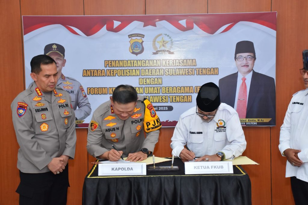 Thank you for reading this post, don't forget to subscribe!Penandatanganan nota kesepahaman dilakukan langsung Kapolda Sulteng Irjen Pol Dr. Agus Nogroho, S.I.K., SH., MH dan Ketua FKUB Sulteng Prof. Dr. H. Zainal Abidin, M.Ag di Ruang Rapat Kapolda Sulteng, Kamis (8/5/2025)