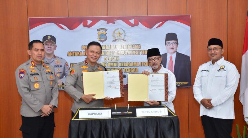 PALU, mediakpk.co.id – Kepolisian Daerah (Polda) Sulawesi Tengah (Sulteng) bersama Forum Kerukunan Umat Beragama (FKUB) Sulteng sepakati nota kesepahaman untuk peningkatan moderasi beragama personil Babinkambtimas.