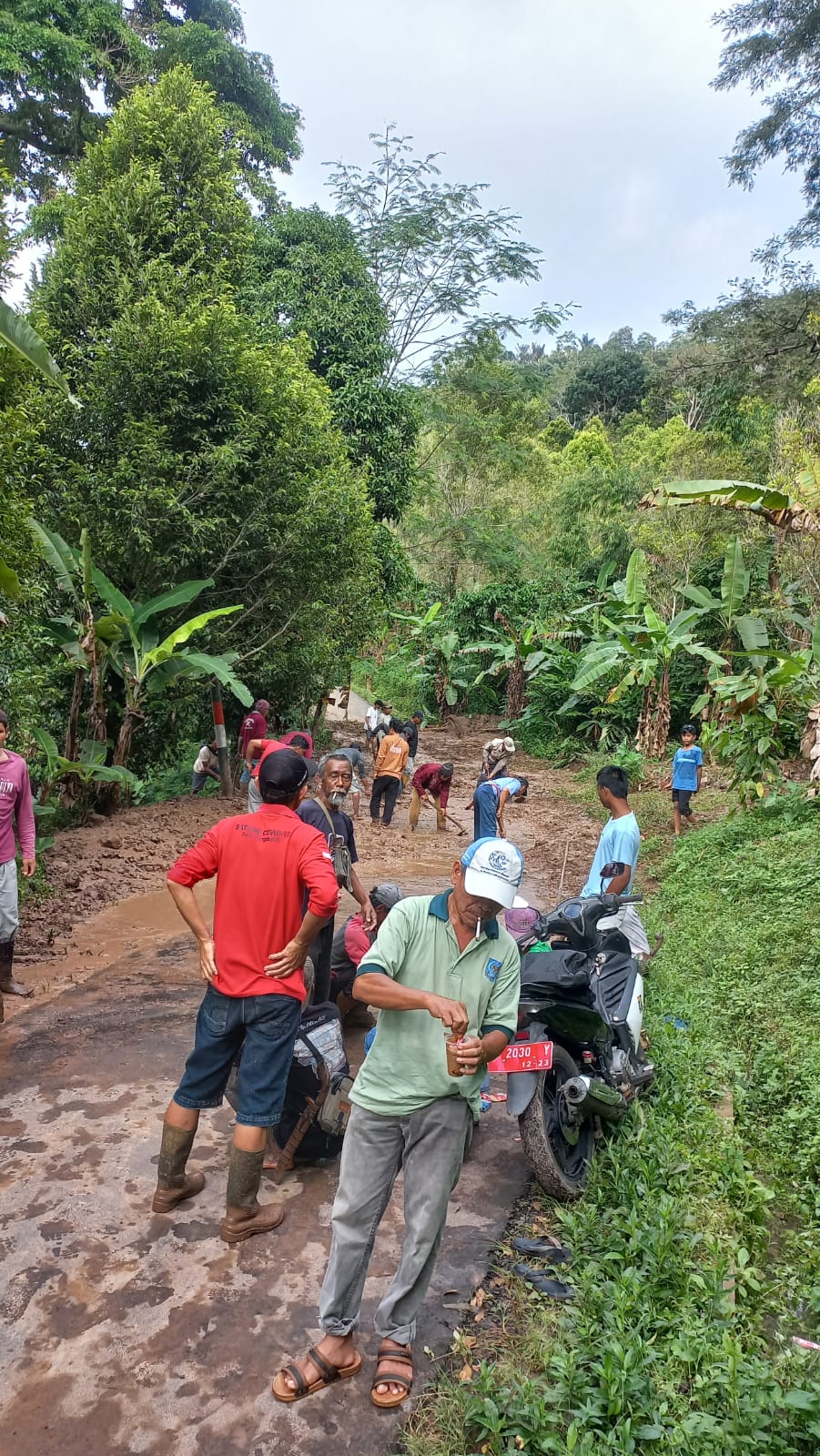 Tindak Lanjut Penanganan Tim gabungan dari BPBD, TNI, POLRI, serta pemerintah desa dan kecamatan, lanjut Indra, kini tengah melakukan asesmen dan pembersihan material longsor.