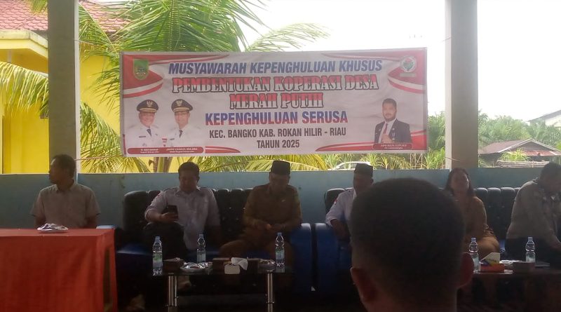 MEDIA KPK.CO.ID | Senin 19/05/2025 Bertempat di gedung GOR kepenghuluan Serusa kecamatan Bangko kabupaten Rokan Hilir. PJs penghulu Serusa Herman, S.E mengadakan kegiatan Musyawarah Kepenghuluan Khusus dalam rangka pembentukan Koperasi Desa Merah Putih di kepenghuluan Serusa.