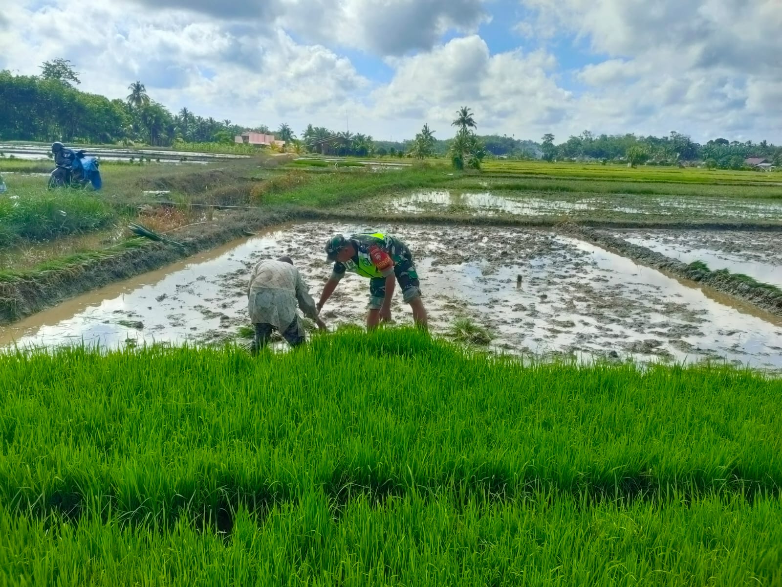 Dalam rangka mewujudkan Swasembada Pangan dan untuk meningkatkan kesejahteraan petani, Serka Indra Juliawan Lubis, Babinsa Koramil 08/Rantau jajaran Kodim 0117/Aceh Tamiang, melakukan aksi pendampingan Ketahanan Pangan dengan membantu proses pencabutan bibit padi di sawah milik Bapak Sardi, Ketua Kelompok Tani Sejahtera II di Desa Rantau Pauh, Kecamatan Rantau, Kamis (29/5/25).