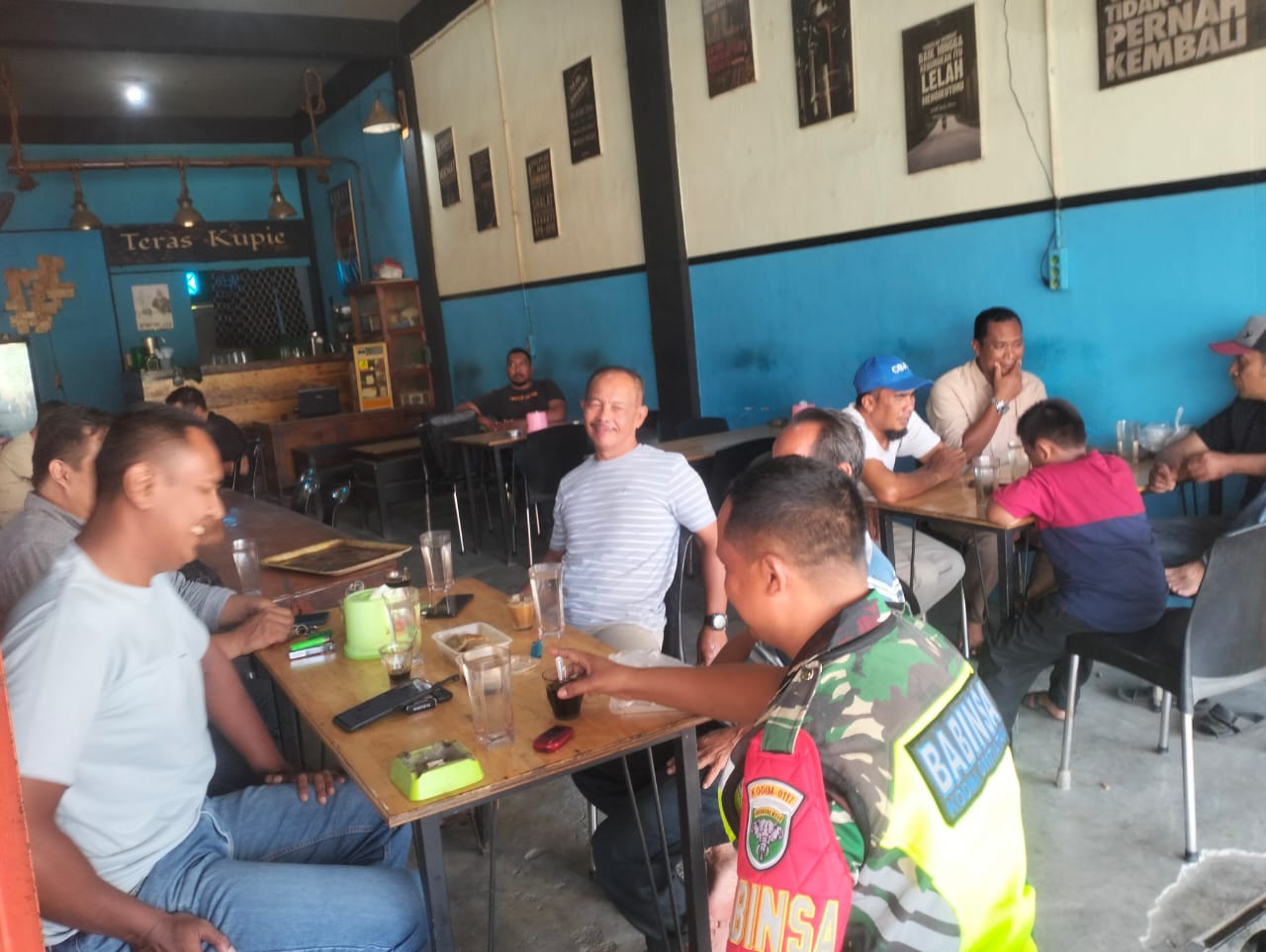 Sertu Agus Supriyanto, Babinsa Desa Bukit Tempurung, Kecamatan Kota Kuala Simpang, Kabupaten Aceh Tamiang, melaksanakan kegiatan Komunikasi Sosial (Komsos) dengan bersenda gurau bersama warga binaannya di salah satu warung kopi di wilayah tersebut, Kamis (29/5/25). Kegiatan ini bertujuan untuk mempererat hubungan antara TNI dan masyarakat.