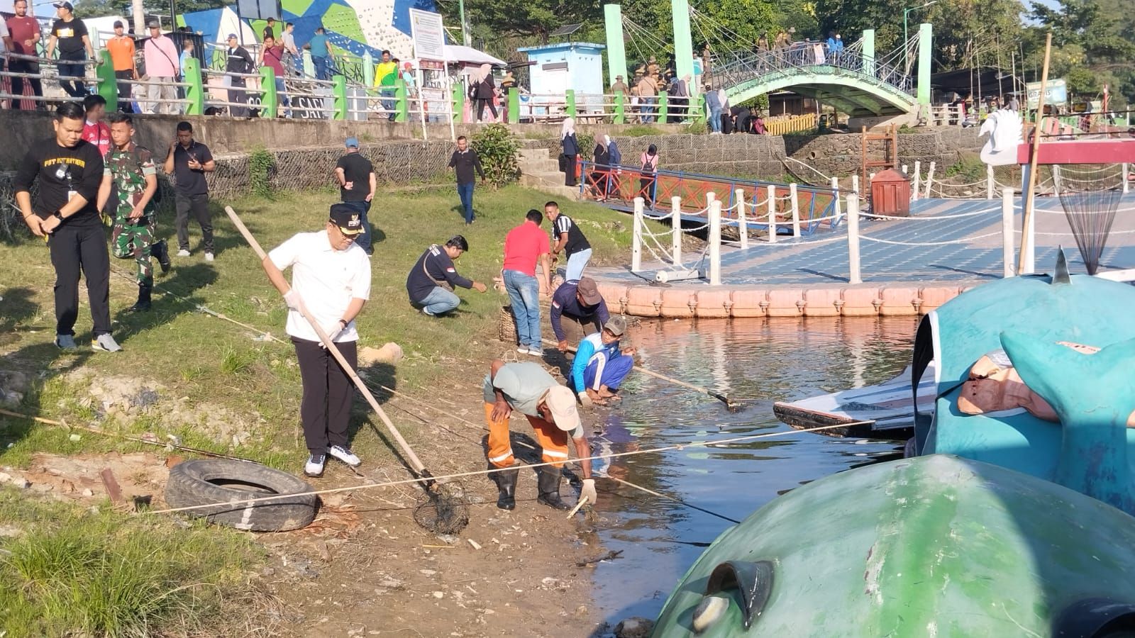 Wali Kota Jambi, Dr. dr. H. Maulana, MKM, bersama Wakil Wali Kota Diza Aljosha Hazra, turun langsung memimpin aksi gotong royong di kawasan Danau Sipin, salah satu ikon wisata unggulan Kota Jambi.