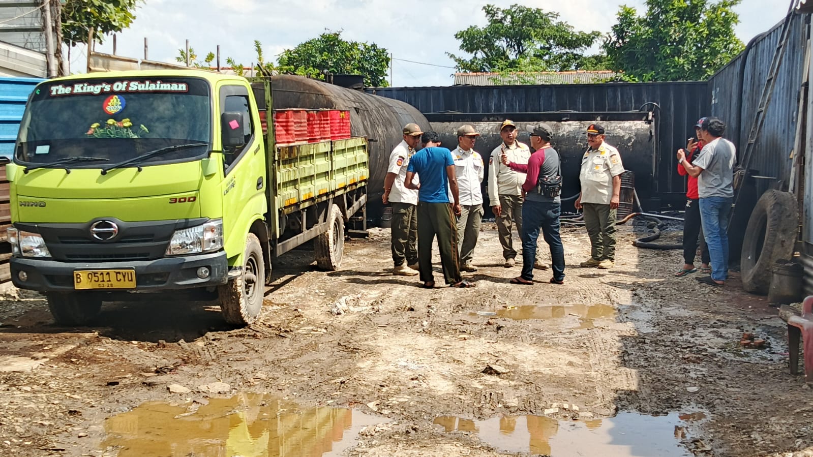 Adanya pemberitaan negatif dari media online lokal pihak Satpol PP kecamatan Cilincing bersama anggota Satpol PP kelurahan Marunda mengecek kembali tempat penampungan oli bekas yang saat ini ramai diberitakan.