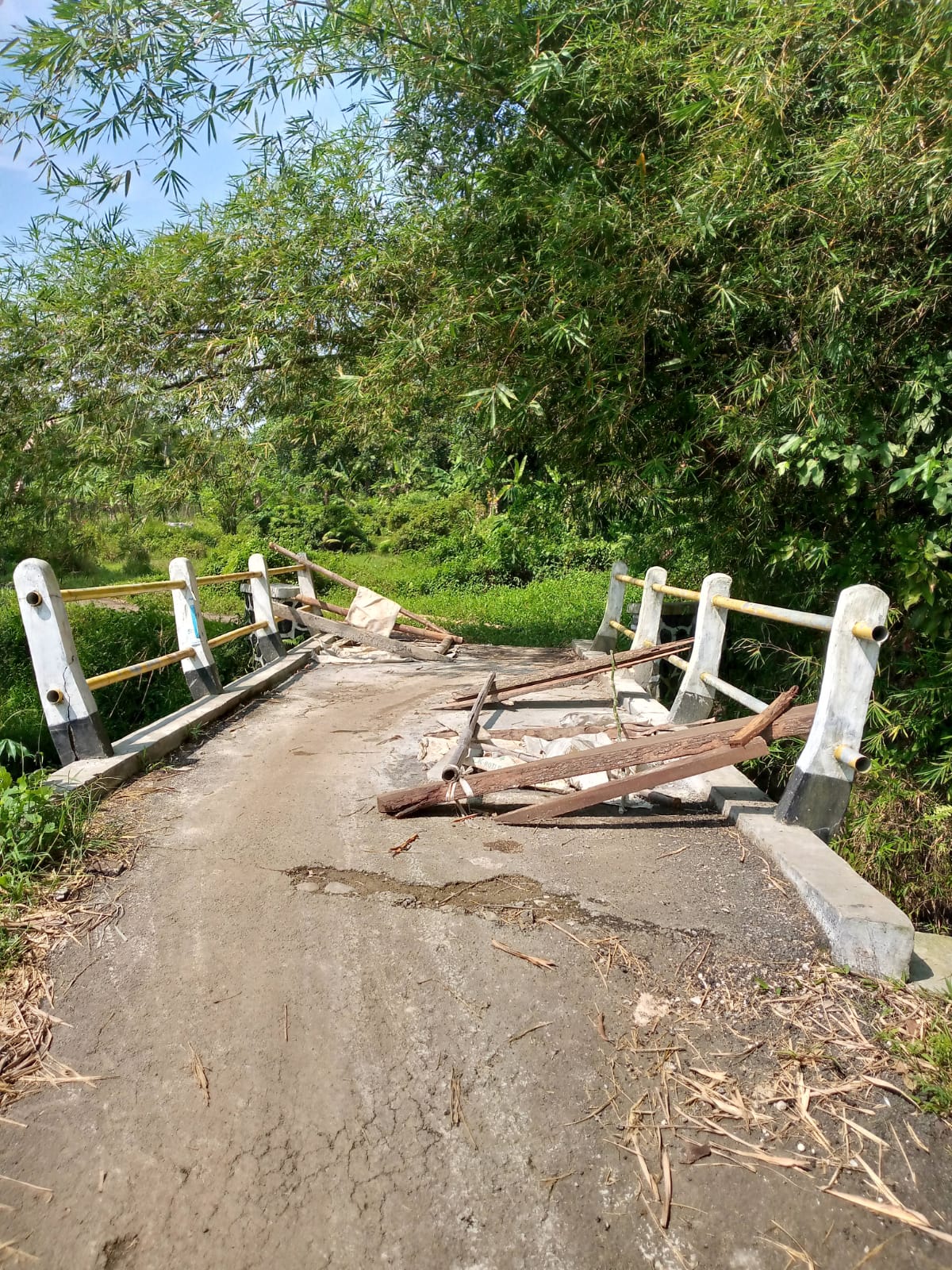 setelah di konfirmasi ulang hasilnya ternyata jalan tersebut rusak karena dilewati truk pengangkut kayu yang melebihi kapasitas muatan.untuk itu kedepannya pihak Desa akan lebih teliti lagi menunjuk pemborong pelaksana proyek jembatan,supaya jembatan jangan cepat rusak,dan perlu pengawasan juga kepada pengurus Desa dan masyarakat agar kendaraan yang melewati jembatan harus sesuai Tonasenya.