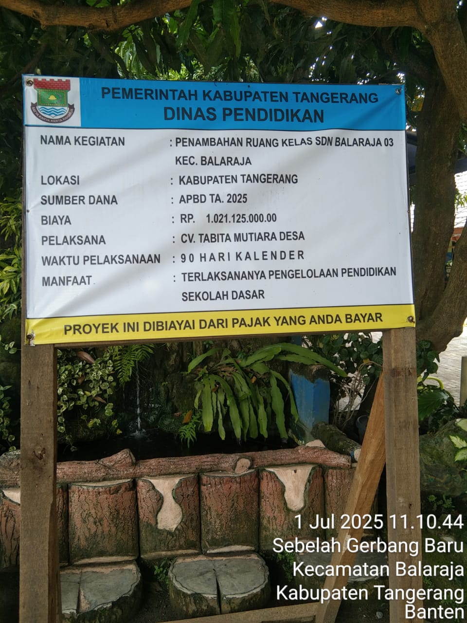 Tangkerang – mediakpk.co.id- Walaupun telah di soroti dari berbagai kalangan sosial countrol terutama melalui pemberitaan di ratusan pemberitaan seakan – hanya angin lalu .hal itu dapat di lihat dari pembangunan SMPN 5 Cikupa dengan menghabiskan APBD kabupaten Tangerang 2025 Rp 1.654.100.000 untuk pembangunan 3 ruang kelas baru dikerjakan CV rindang cakrawala..dengan masa pengerjaan 90 hari kalender .sama hal dengan rehab gedung SMPN 2 Mauk hanya 2 lokal menghabiskan APBD kabupaten Tangerang anggaran tahun 2025 Rp 727.125.000 dengan masa pengerjaan 75 hari kalender . dengan pemenang tender PT binsaraya abadi.demikian hal penambahan ruang kelas SDN Balaraja 03 dengan nilai anggaran sangat fantastis rp.1.021.125.000 tahun anggaran 2025 masa pengerjaan 90 hari kerja dengan pemenang tender CV.TABITA MUTIARA DESA.hal menimbulkan kecurigaan yang sangat mendalam bagi para sosial countrol .