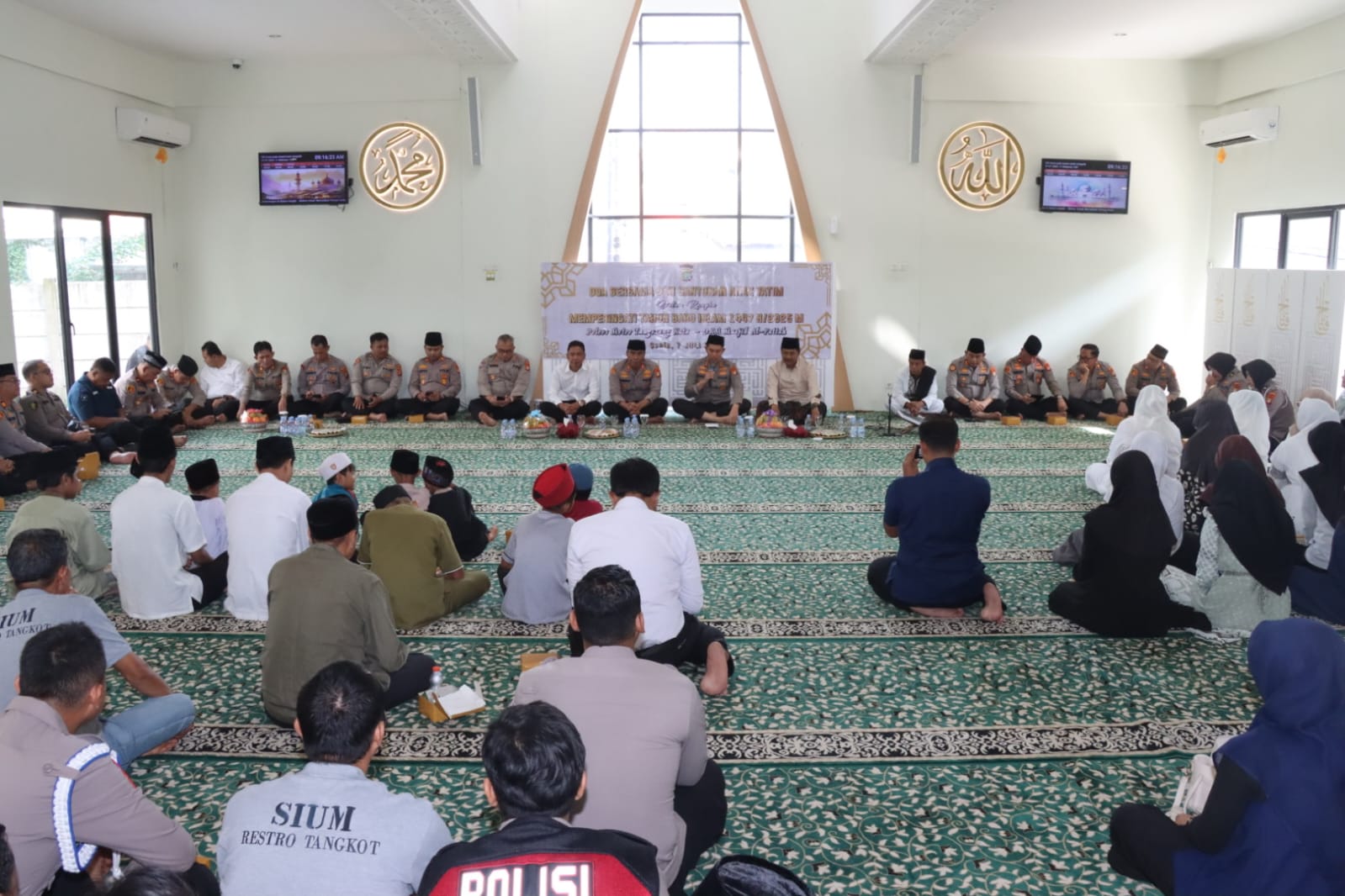Dalam rangka memperingati Tahun Baru Islam 1 Muharram 1447 Hijriah, Polres Metro Tangerang Kota menggelar pengajian dan kegiatan santunan kepada anak yatim dan Pegawai Harian Lepas (PHL). Kegiatan ini dilangsungkan di Masjid Al-Fattah Mapolres pada Senin pagi (7/7/2025).