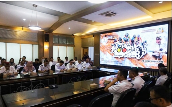Persiapan TdL ke-8 dipimpin langsung oleh Bupati Kuningan, Dr. H. Dian Rachmat Yanuar, M.Si., bersama jajaran panitia, perwakilan TNI, dan Polres Kuningan dalam rapat koordinasi di Ruang Rapat Linggarjati, Rabu pagi (9/7/2025).