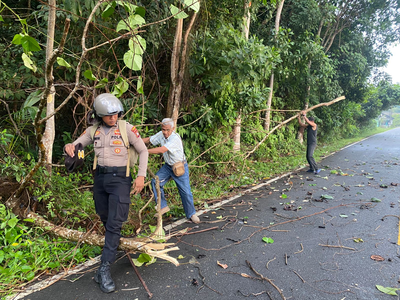 Thank you for reading this post, don't forget to subscribe!Kejadian tersebut sempat membuat lalu lintas terganggu dan menghambat aktivitas warga. Menanggapi laporan dari masyarakat, personel Sat Samapta langsung diterjunkan ke lokasi untuk melakukan pembersihan dan evakuasi batang pohon yang melintang di badan jalan.