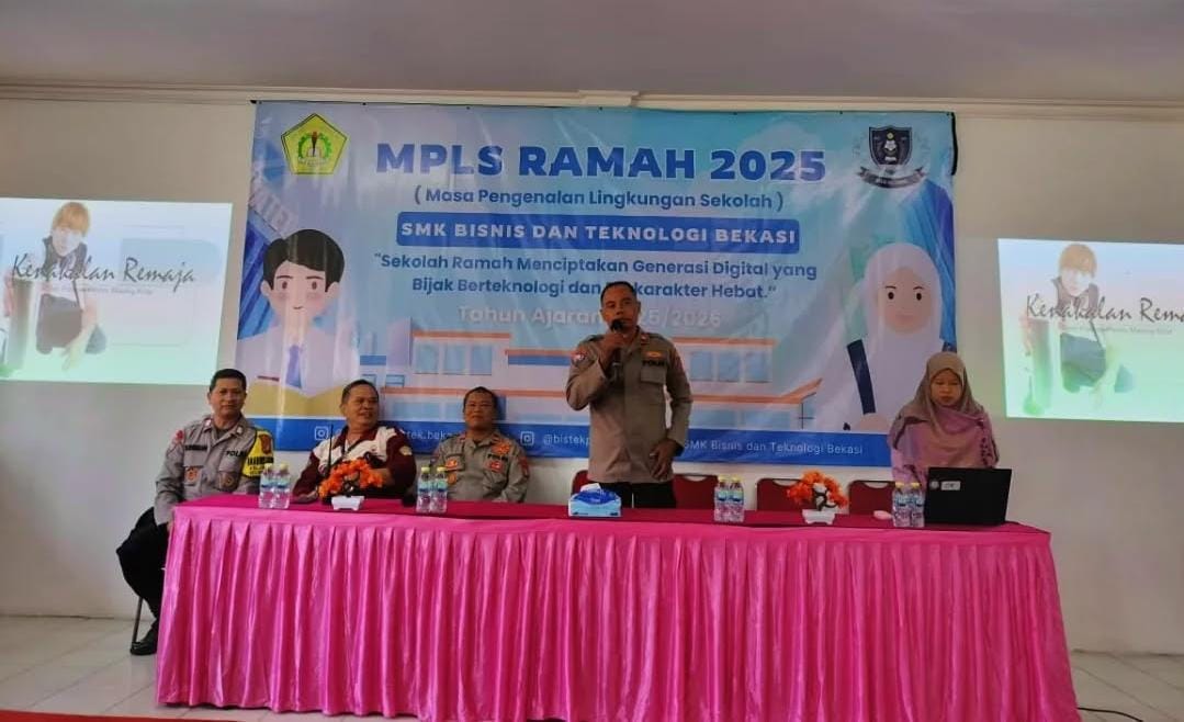 Kota Bekasi — Dalam rangka membentuk karakter generasi muda dan mencegah perilaku menyimpang di kalangan pelajar, Kepolisian Sektor Bekasi Selatan melalui Unit Binmas menggelar kegiatan penyuluhan hukum, wawasan kebangsaan, serta kenakalan remaja di SMK BISTEK (Bisnis dan Teknologi) Bekasi, yang berlokasi di Jalan Asamawi, Kelurahan Jakamulya, Kecamatan Bekasi Selatan pada Rabu, (23/7/2025).