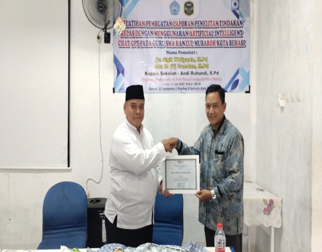 Pelatihan pembuatan Laporan Penelitian Tindakan Kelas dengan Menggunakan Artificial Inteligens Di SMA Al Mubarok Jati Asih Bekasi