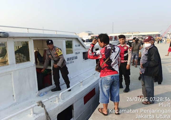 Jakarta,27 Juli 2025 — Personel Polsek Kawasan Sunda Kelapa Polres Pelabuhan Tanjung Priok melaksanakan kegiatan pengamanan dan pelayanan wisatawan yang akan berangkat menuju Kepulauan Seribu melalui Dermaga Kali Adem, Pelabuhan Muara Angke, pada Sabtu pagi (26/07).