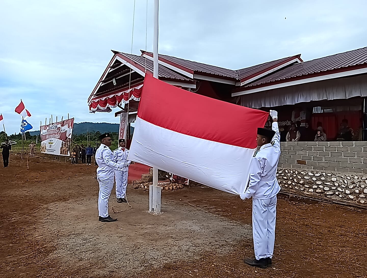 Pengibaran Sang Saka Merah Putih dipimpin langsung oleh petugas upacara yang terdiri dari putra-putri terbaik daerah, disaksikan oleh Camat Tolala H. Masdar, SH, Kapolsek bersama jajaran, Babinsa, perwakilan PT Mulia Makmur Perkasa (MMP), para kepala desa se-Kecamatan Tolala, BPD, aparat desa, guru, PPK, dan ratusan peserta dari berbagai kalangan masyarakat.