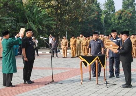 Pelantikan langsung oleh Bupati Kuningan, H. Dian Rachmat Yanuar. di Halaman Kantor Setda Kuningan Kompleks KIC, bersamaan dengan apel pagi Senin (25/8/2025).