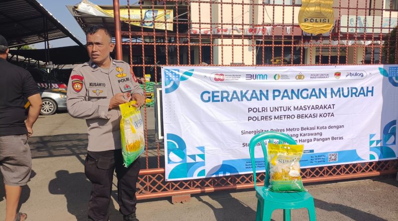 KOTA BEKASI – Polres Metro Bekasi Kota bersama Bulog Cabang Karawang menggelar kegiatan Gerakan Pangan Murah Polri untuk Masyarakat di halaman Kantor Polsek Bekasi Utara pada Kamis (28/8). Program ini bertujuan untuk menjaga stabilitas pasokan serta harga beras agar tetap terjangkau bagi masyarakat.