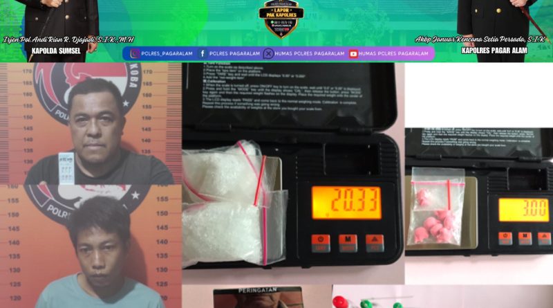 Pagar Alam. Media KPK. Com. Id. Satuan Reserse Narkoba Polres Pagar Alam berhasil mengungkap kasus tindak pidana narkotika, Kamis (28/8/2025) dini hari. Dua orang pelaku, Ateng Harianto (52) warga Lahat, dan Ari Aprianto (35) warga Kelurahan Selibar, diamankan di sebuah pondok persawahan Desa Pengandonan dengan barang bukti narkotika jenis shabu dan ekstasi.