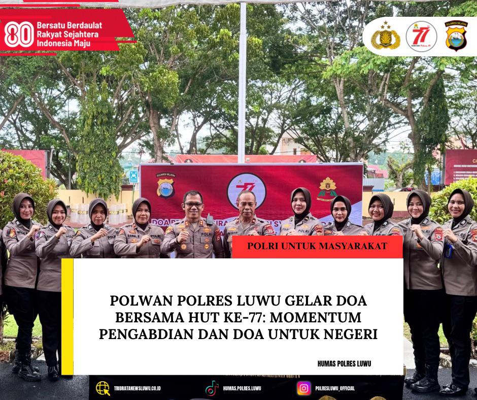 Thank you for reading this post, don't forget to subscribe!Polisi Wanita (Polwan) Polres Luwu memperingati Hari Ulang Tahun (HUT) ke-77 Polwan Republik Indonesia dengan menggelar kegiatan doa bersama yang berlangsung khidmat di halaman Mapolres Luwu, Senin (1/9/2025).