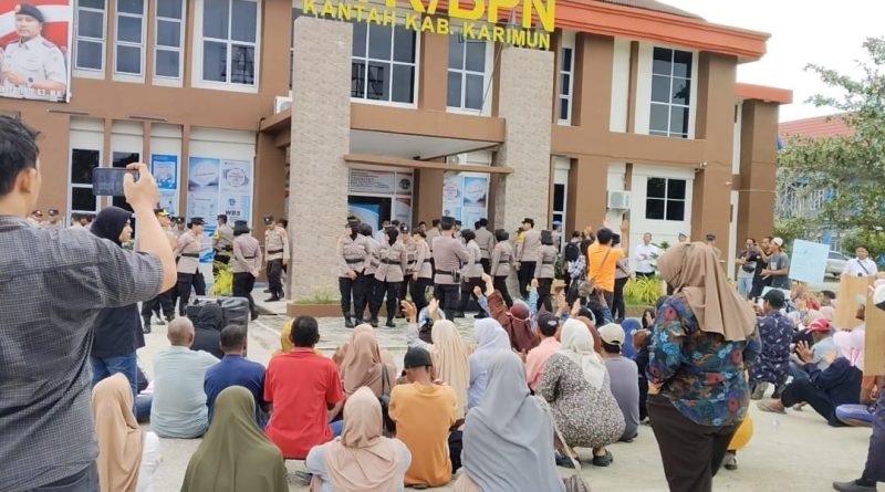 Karimun. Mediakpk. Ratusan masyarakat yang menguasai lahan berlokasi di kelurahan sungai pasir kecamatan meral kabupaten karimun provinsi kepulauan riau melakukan aksi demonstrasi di kantor pengadilan negeri tanjung balai karimun dan kantor pertanahan kabupaten karimun pada hari senin (15/9/2025).