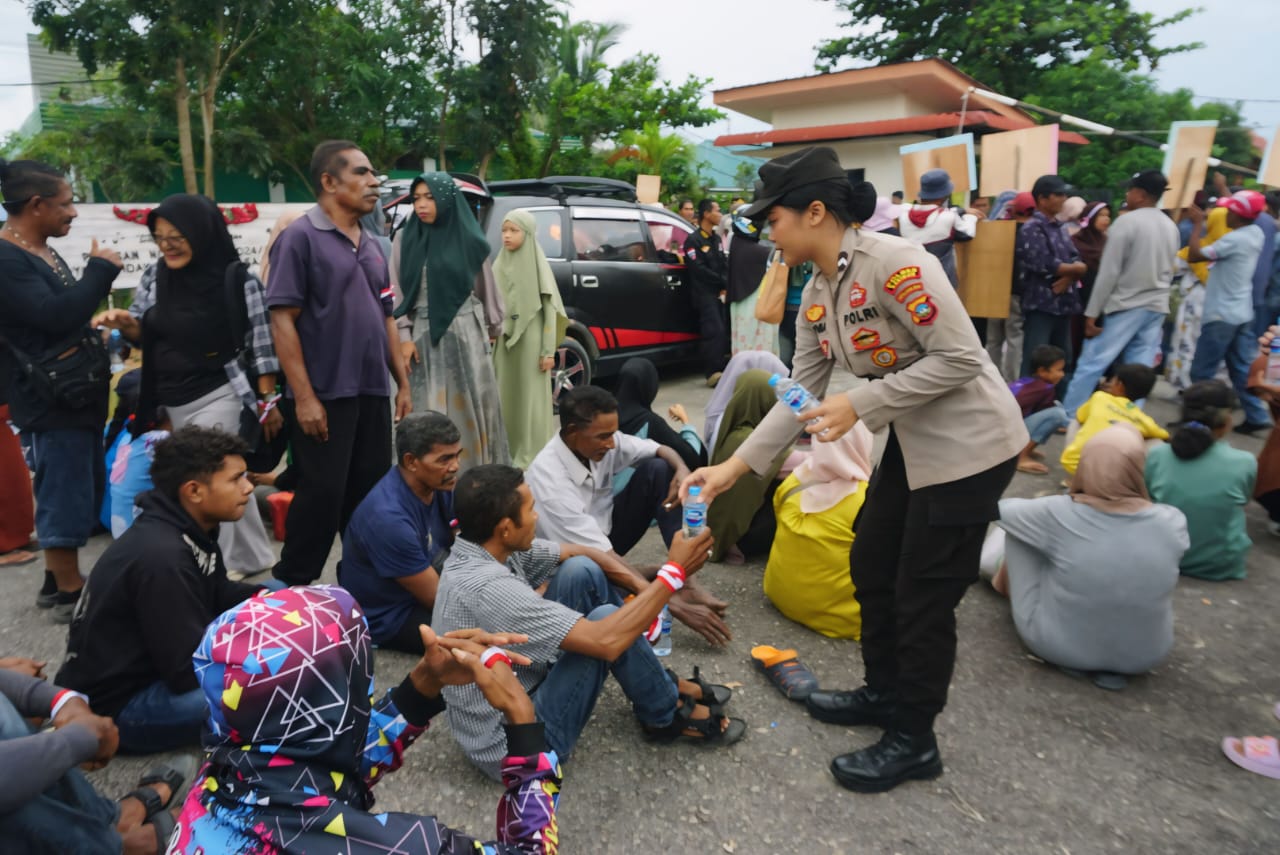 Dalam kegiatan tersebut, Polres Karimun juga menunjukkan pendekatan humanis dengan membagikan air minum kepada para peserta aksi. Hal ini dilakukan untuk menjaga suasana tetap kondusif serta memastikan kesehatan masyarakat yang mengikuti kegiatan unjuk rasa.