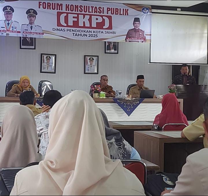 Acara Forum Konsultasi Publik selasa 16 september 2025 yang berlangsung di gedung Aula Tut Wuri Handayani Dinas Pendidikan Kota Jambi dimulai dari pukul 09.00 wib s/d selesai.