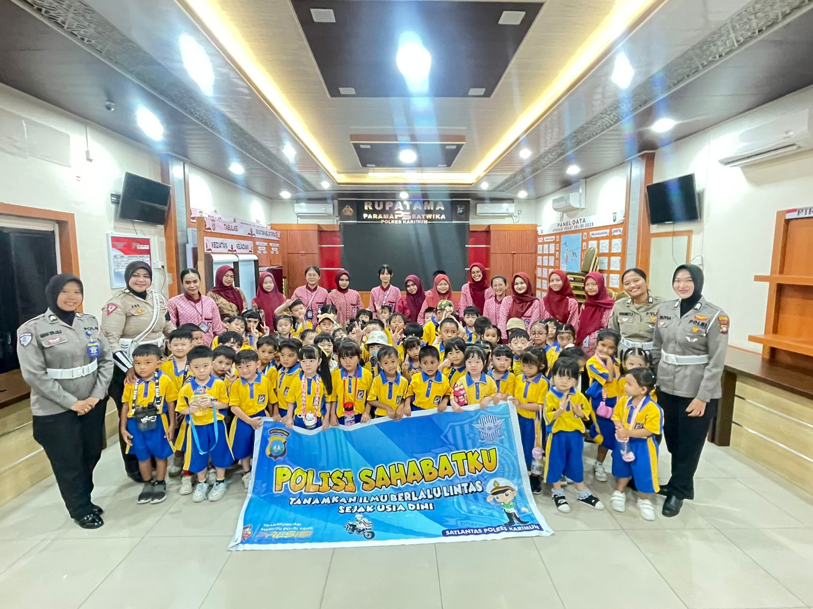 Karimun. Mediakpk. Hari Jumat, 19 September 2025 pukul 09.00 WIB s/d selesai, bertempat di Ruang Rupatama Polres Karimun, Satlantas Polres Karimun melaksanakan kegiatan Polisi Sahabat Anak (Polsanak) berupa kunjungan edukatif dan pengenalan lingkungan kerja Polres Karimun bersama anak-anak Taman Kanak-kanak Maitreyawira Kabupaten Karimun.