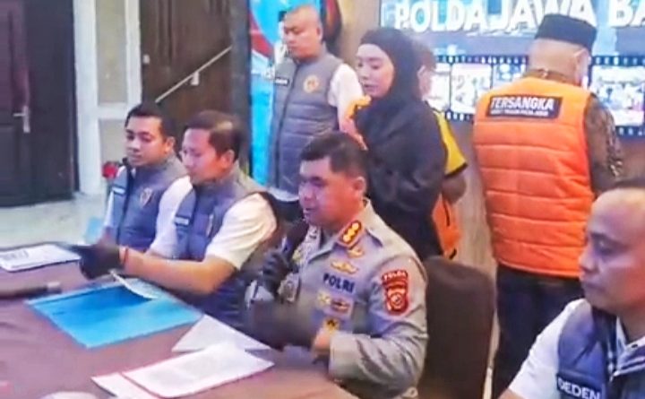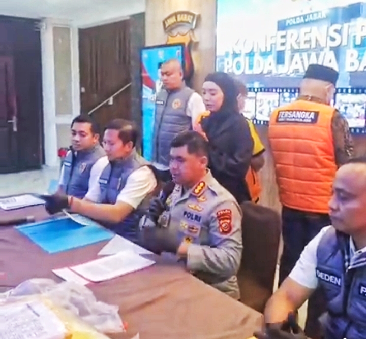 Konferensi pers digelar di Mapolda Jabar, Rabu (12/11/2025), dipimpin Kabid Humas Polda Jabar Kombes Pol Hendra Rochmawan bersama Direktur Reserse Kriminal Khusus Polda Jabar Kombes Pol Dr Wirdhanto Hadicaksono.