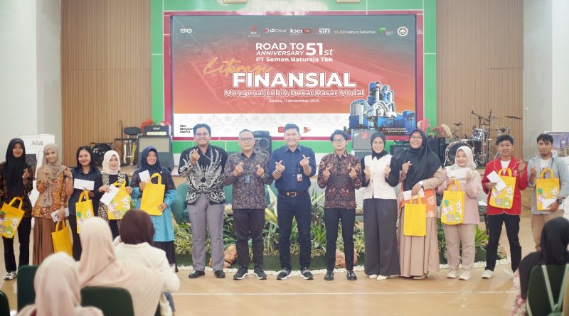 Baturaja, 12 November 2025- PT Semen Baturaja Tbk (SMBR) selaku anak usaha PT Semen Indonesia (Persero) Tbk (SIG) berkolaborasi dengan Bursa Efek Indonesia (BEI) dan KB Valbury Sekuritas dalam kegiatan Literasi Finansial : Mengenal Lebih Dekat Pasar Modal yang digelar di Ganesha Arena, Baturaja pada Selasa (11/11) dalam rangka Hari Ulang Tahun ( HUT) SMBR ke-51. Kegiatan yang merupakan Batch ke-5 ini diikuti oleh peserta yang terdiri dari masyarakat umum, mahasiswa dari berbagai universitas di kabupaten Ogan Komering Ulu (OKU), serta anggota Ikatan Istri Karyawan Semen Baturaja (IIKSB). Tujuannya untuk meningkatkan pemahaman generasi muda dan komunitas internal SMBR terhadap pentingnya literasi serta inklusi keuangan di bidang passr modal.