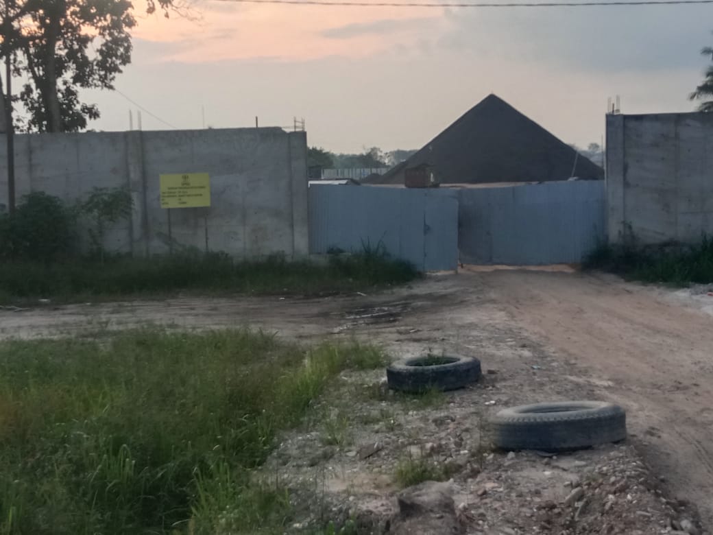 Ditanah ini kita dijadikan tempat penampungan limbah sawit berupa cangkang sawit dan telah ditembok beton keliling,tertulis PT.SLA(Sumatera Lintas Asia)