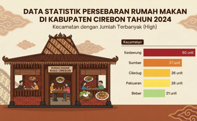 Data tahun 2024 menunjukkan persebaran rumah makan di Kabupaten Cirebon masih terkonsentrasi pada kecamatan dengan aktivitas pemerintahan dan mobilitas masyarakat yang tinggi.