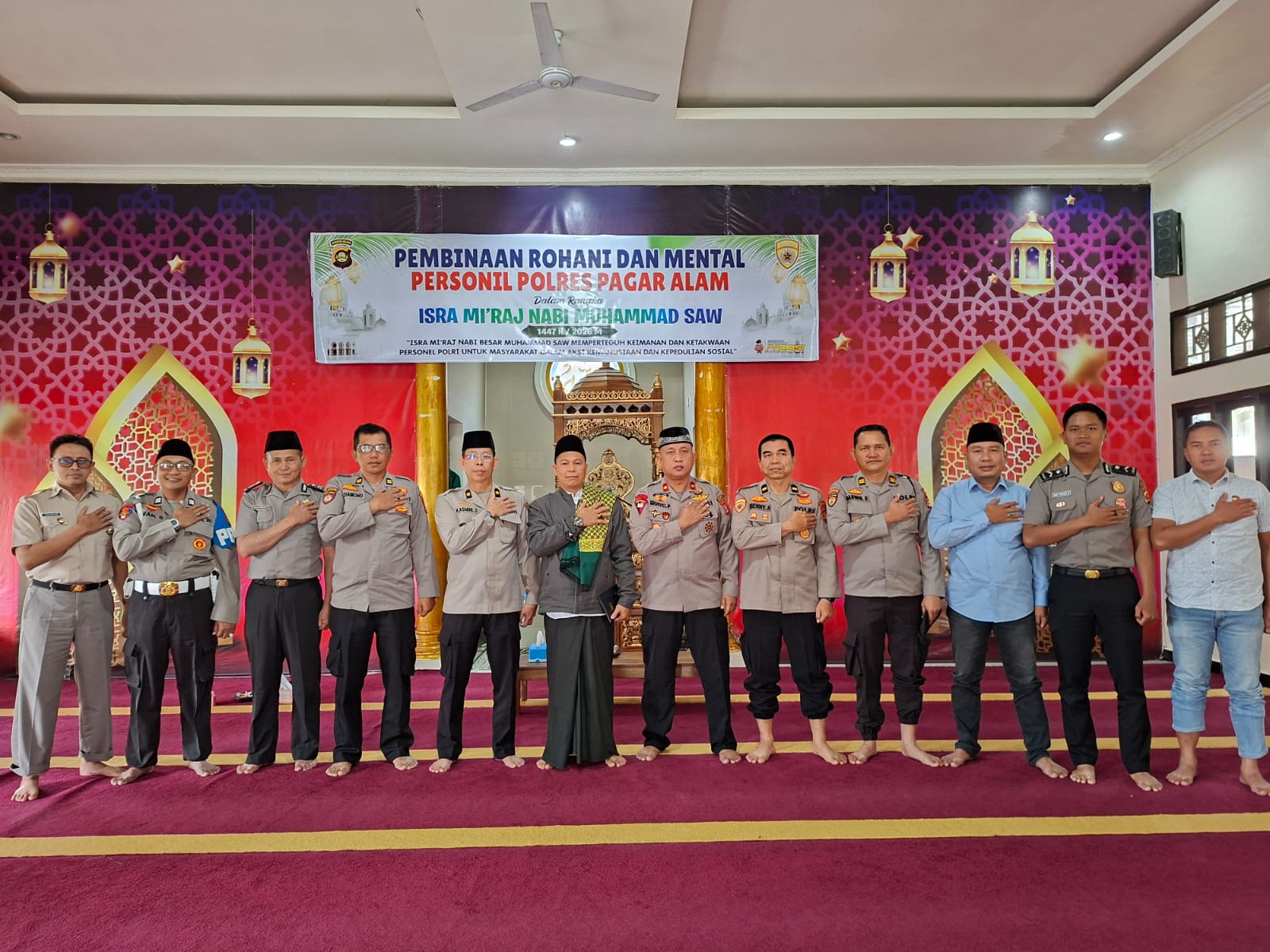 Pagar Alam. Media KPK . Com. Id. Suasana penuh khidmat menyelimuti Masjid Al-Hikmah Polres Pagar Alam dalam rangka peringatan Isra Mi’raj Nabi Muhammad SAW.