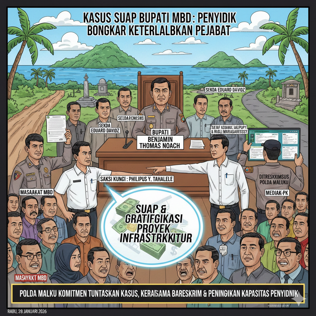 Thank you for reading this post, don't forget to subscribe!Kasus tersebut saat ini sedang dalam penyelidikan oleh Ditreskrimsus Polda Maluku., sehubungan dengan sejumlah proyek Infrastruktur di kabupaten MBD, yang diduga didahului transaksi suap dan gratifikasi seperti pemnangunan Jalan Sirtu Tihuleli dan TPU di Letti serta peningkatan jalan Sp Batumiau – Luhuleli di Letti.