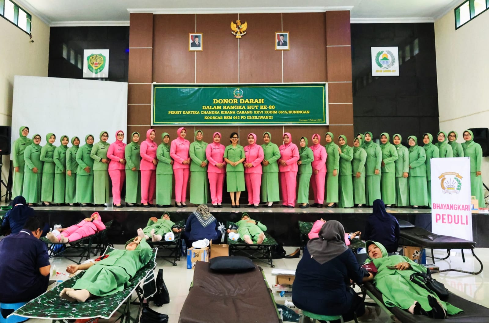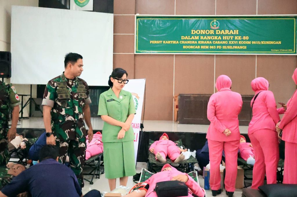 Dandim 0615/Kuningan Letkol Arh Hafda Prima Agung menyampaikan, bahwa HUT ke-80 Persit KCK menjadi momentum penting untuk memberikan kontribusi nyata bagi masyarakat. Donor darah adalah bentuk kepedulian yang sederhana namun sangat berarti, karena setiap kantong darah bisa menjadi harapan bagi nyawa orang lain.