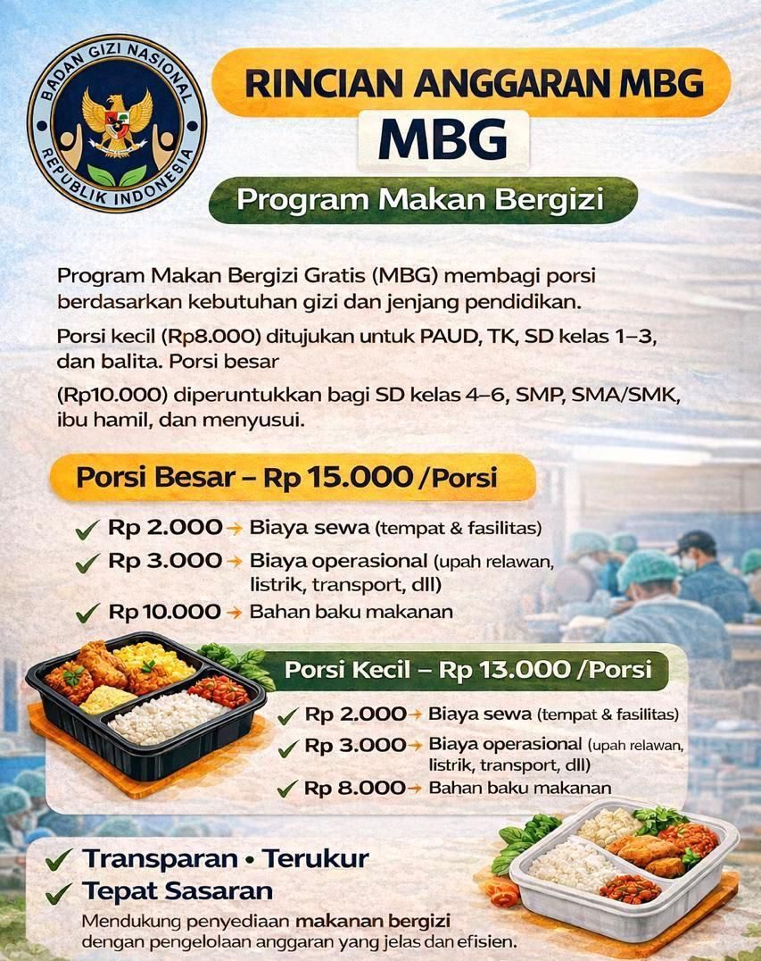 Thank you for reading this post, don't forget to subscribe!Pemerintah melalui Badan Gizi Nasional Republik Indonesia memaparkan rincian anggaran Program Makan Bergizi Gratis (MBG) sebagai bentuk komitmen terhadap transparansi dan pengelolaan anggaran yang terukur serta tepat sasaran.