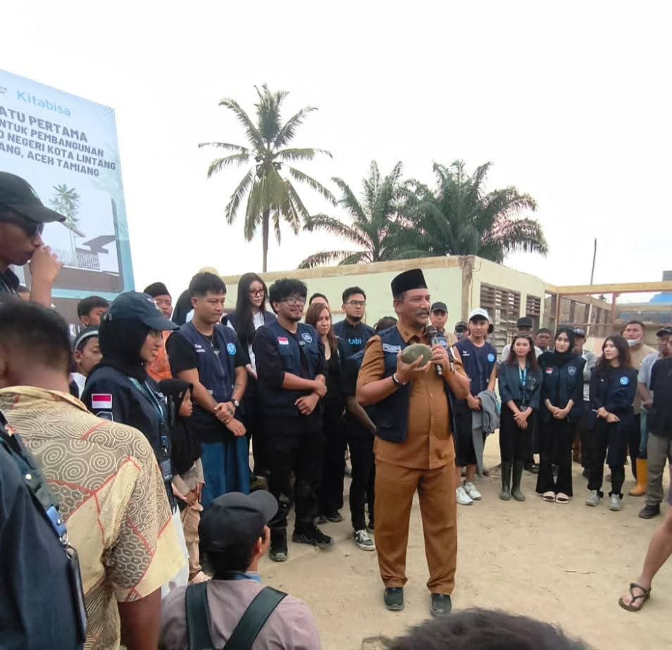 Bupati Aceh Tamiang, Irjen Pol. (P) Drs. Armia Pahmi, MH bersama Ferry Irwandi, Choki Pardede, Yayasan Cakra Abhipraya Renponsif, Malaka Project dan Kitabisa.com melakukan peletakan batu pertama pembangunan Madrasah Diniyah Taklimiyah Awaliyah(MDTA) Al-Ihsan dan SDN Kota Lintang di Kampung Kota Lintang, Kecamatan Kota Kualasimpang, Senin, (26/1/26).