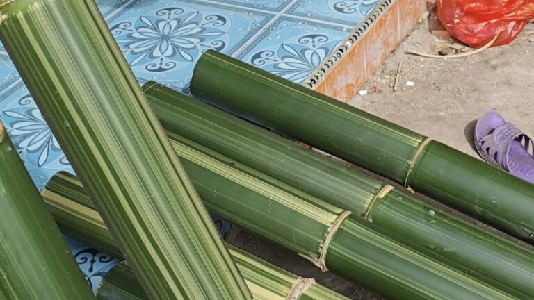 Bambu yang digunakan berasal dari sekitar desa, dengan jenis bambu tali dan bambu surat sebagai bahan utama.